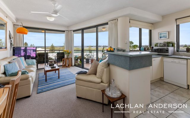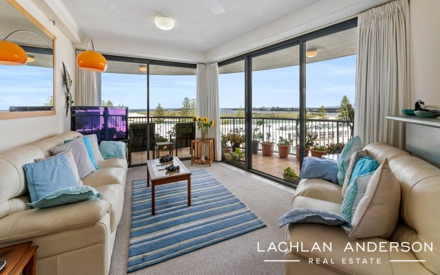 An impeccable apartment is positioned on the 5th floor of Centrepoint Apartments with views overlooking the Pumicestone Passage, Pacific Ocean and Glass House Mountains.