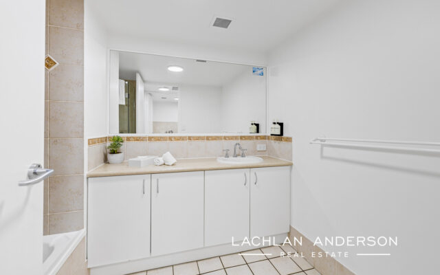 Discover two beautifully appointed bedrooms including a deluxe master bedroom featuring a luxury spa bath, ensuite and terrace access. The remaining bedroom is positioned at the opposite end of the unit creating privacy for all occupants and feature generous built-ins, air conditioning and serviced by a sleek bathroom with a separate laundry.